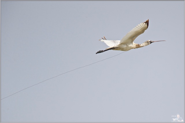 This bird was first spotted on 16/17 around 09:45 on the 13 Dec 2015 .. he left his flock and moved on to a nearby island to throw himself about, trying to remove the line which is tied around his bill and also around his neck (as shown in the two images).. but in vain. Before I had the chance to report this to the ACFD or the WWF, the bird was flushed by incoming Greater Spotted Eagle.
