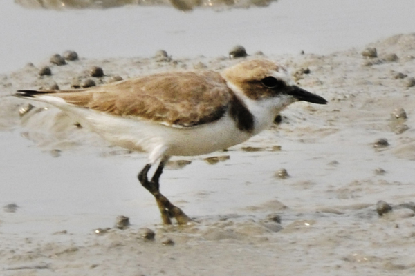 Kentish Plover. Note that the white collar goes right around the back of the neck, which rules out the sand plovers.