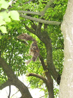 釣魚的魚絲也可以是殺雀兇器,死者也是貓頭鷹,這次是斑頭鵂鶹!
