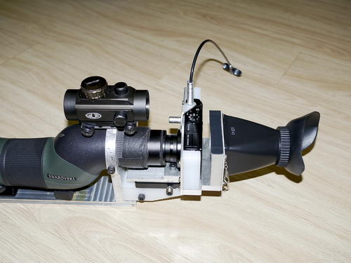 Swaro STS80 HD + DIY adpator + P300 + 瞄准器 + DIY 機械快門線 + 遮光罩