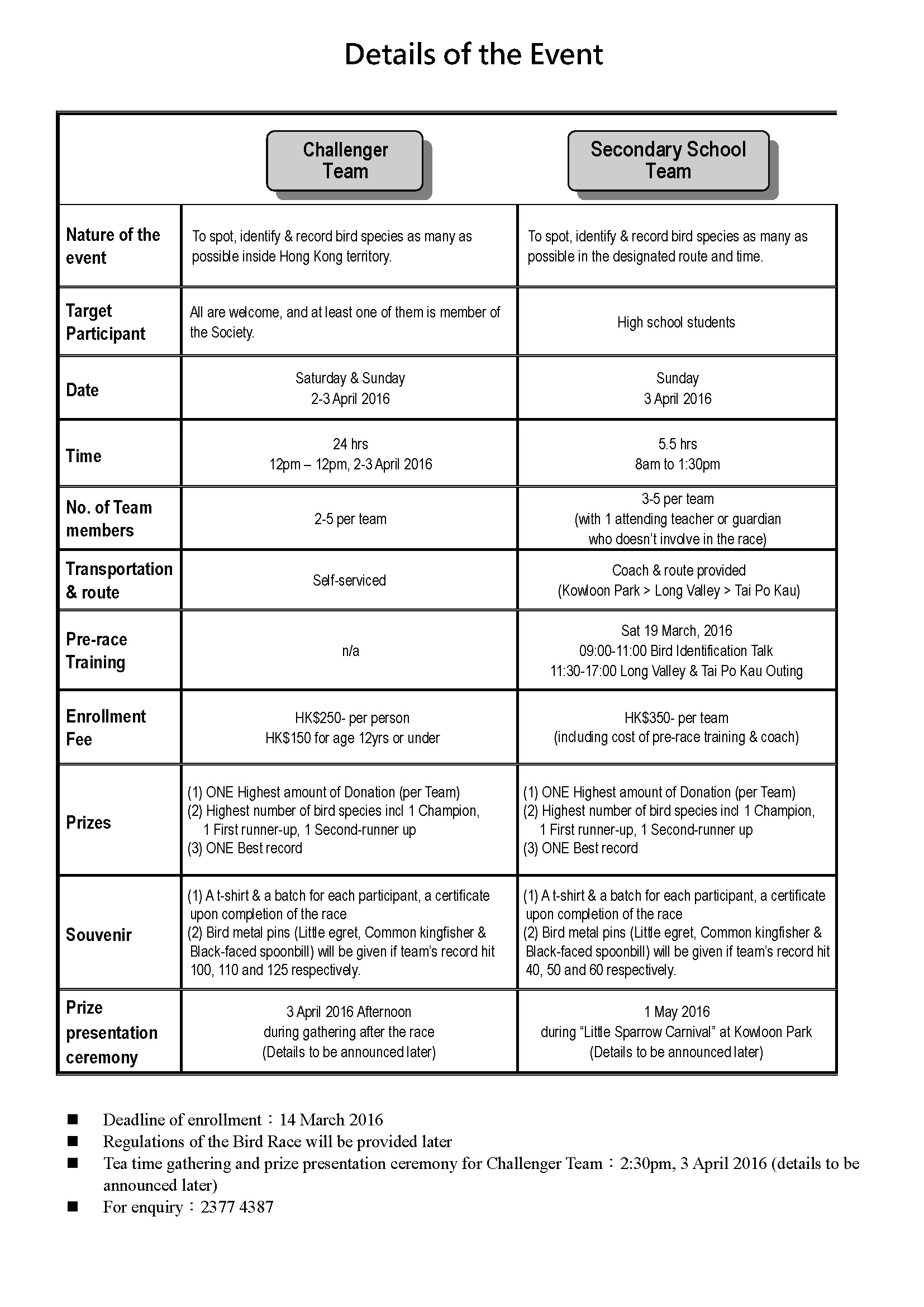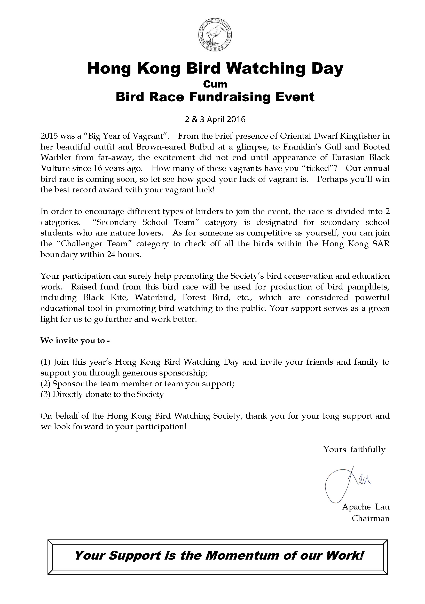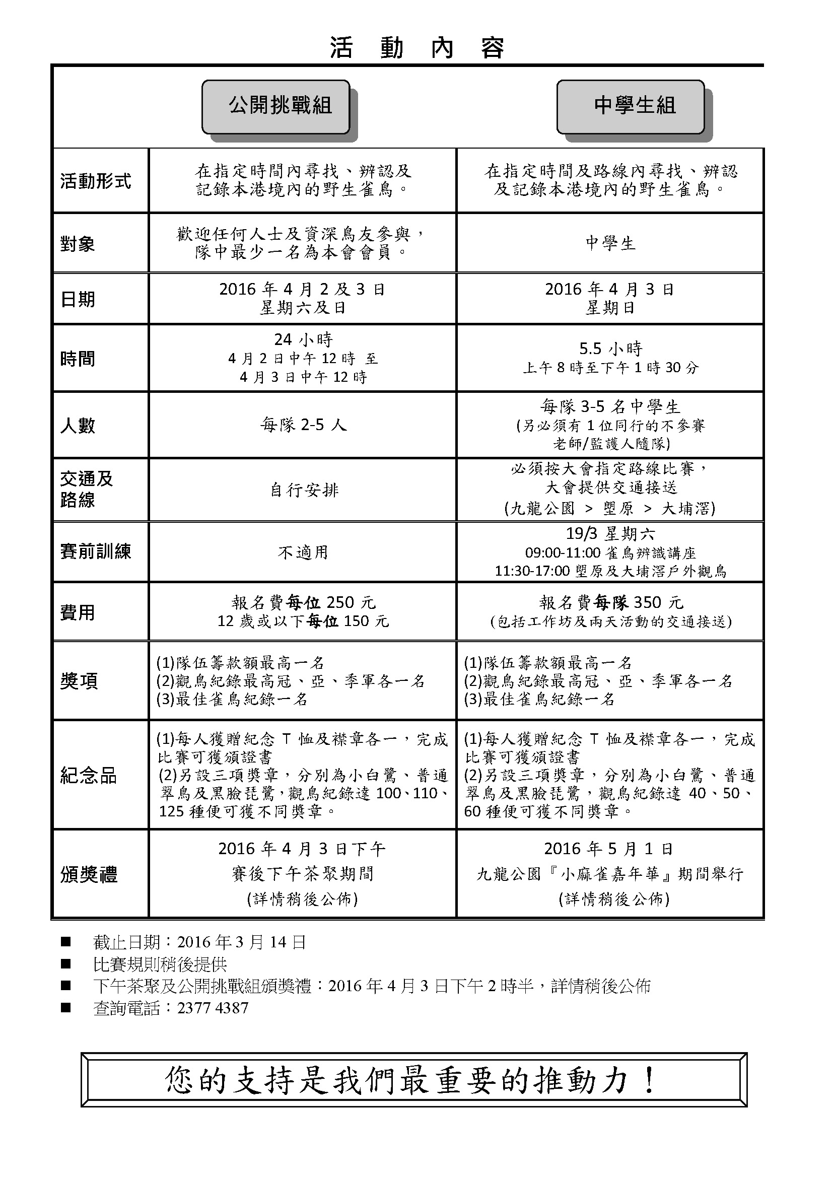暨 觀鳥比賽籌款活動 2016年 4月 2 至 3日