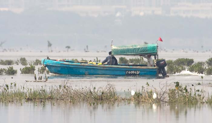 This incident caused a considerable amount of disturbance to the birds outside the WWF and HKBWS hides on the rising tide today. I am told this is a research student from a local University and I will follow up with AFCD.