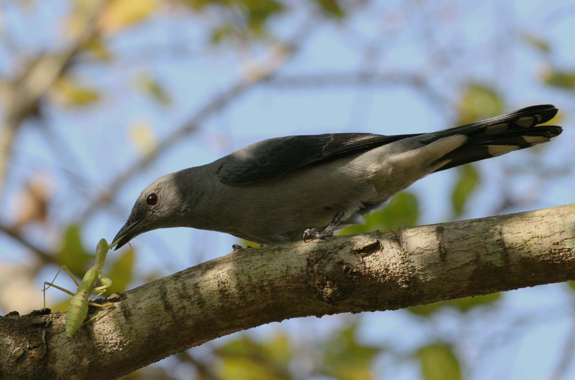 暗灰鵑鵙 Black-Winged Cuckoo-Shrike + mantis