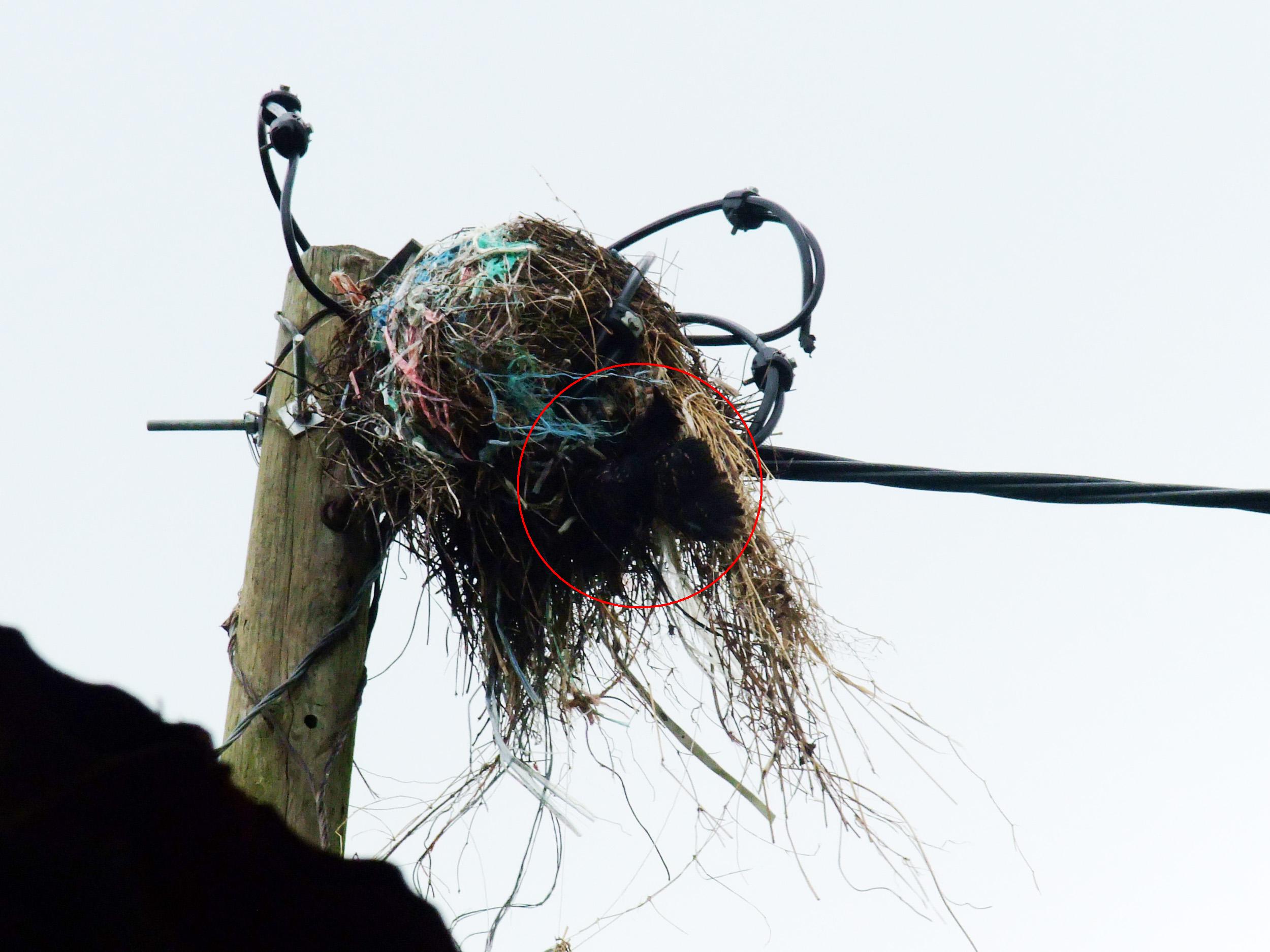今天在塱原看見一個黑領椋鳥,發現巢中的竟然是一隻噪鵑,另外還有一隻死了的噪鵑幼鳥懸掛在巢旁 (紅圈示)。原來噪鵑會在同一個巢中下多過一隻蛋!!!