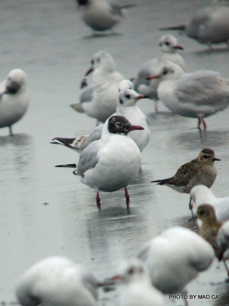 What made me take photo of this bird was the 'bigger' size & 'redder' legs than the Black-headed around. At the same time, there was another one in similar size and legs around but I didn't take any photo. Until home when doing photo editing, I found out the differences to the Black-headed.