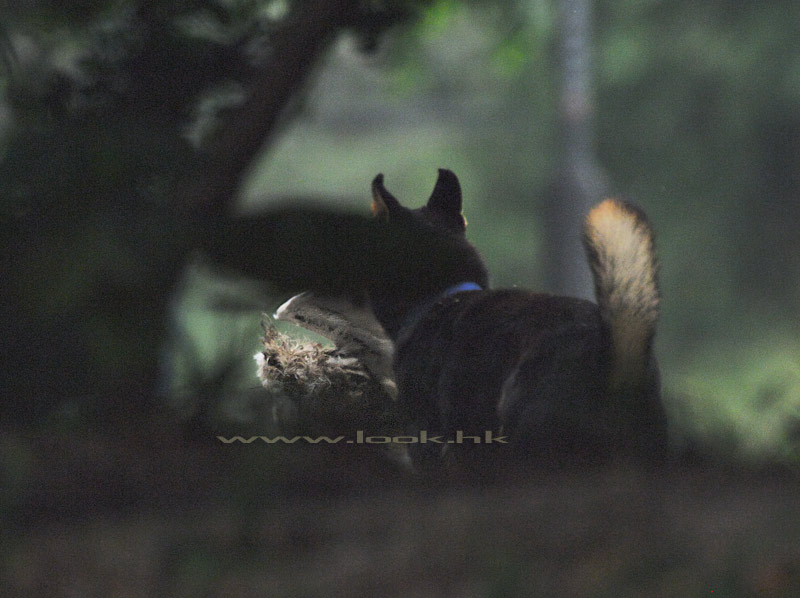 For information, our feral dog management policy involves the baiting of 4 cages around the reserve. Any captured dog(s) is immediately collected by AFCD's Dog Unit for impounding. In 2005, we captured 15 dogs, 17 in 2006, and so far this year 9 plus one feral cat.