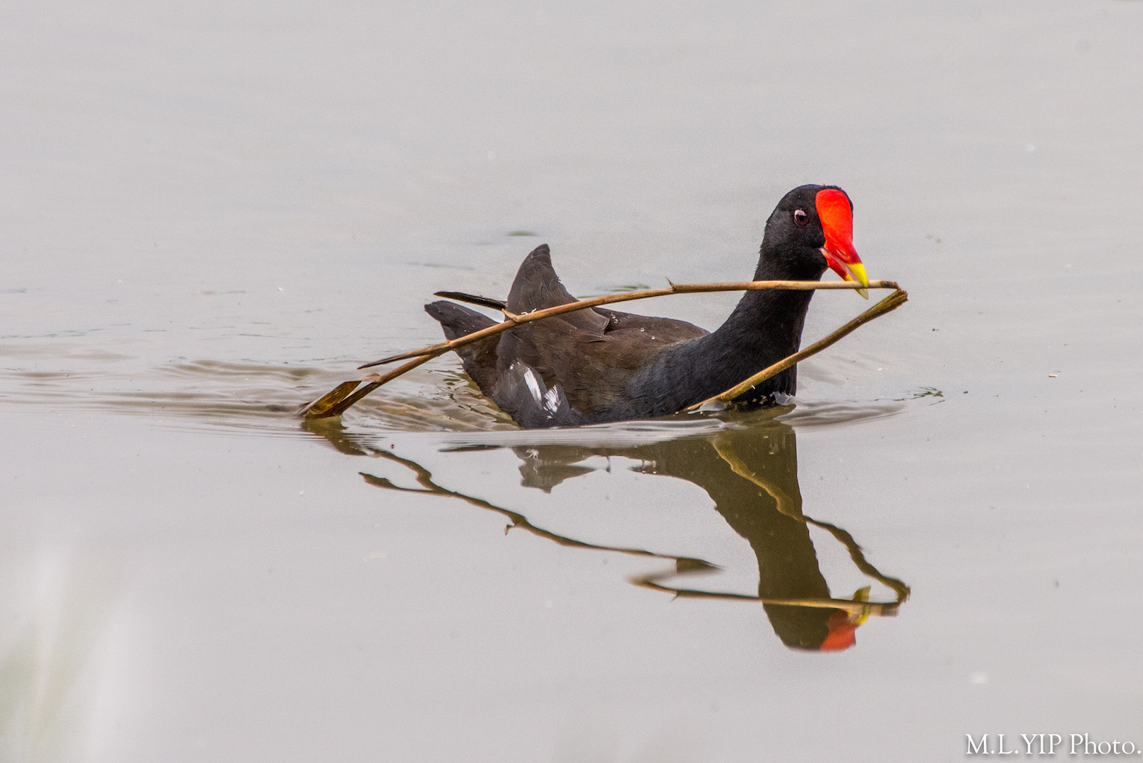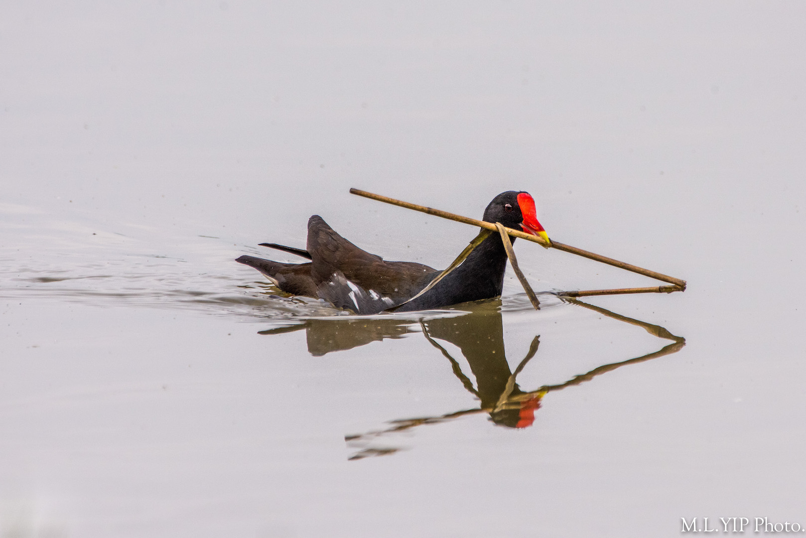 看到這隻黑水雞來來回回的搬運樹枝,估計它正努力地築巢.