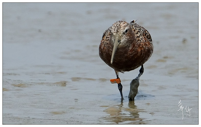 Curlew Sandpiper -  single orange flag on right leg, no alphanumerical