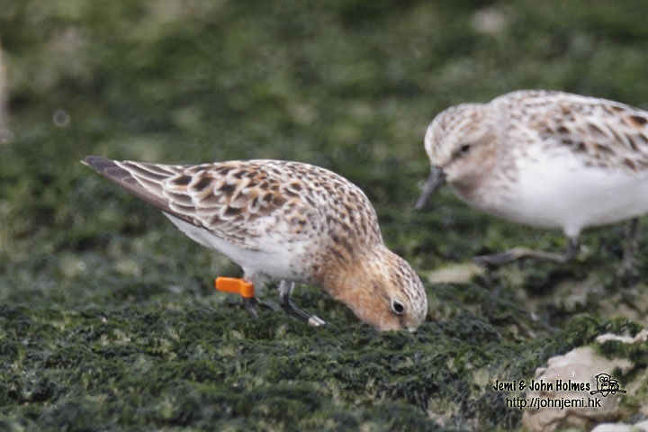 Red-necked Stint - single orange flag on right leg, no alphanumerical (2 individuals)